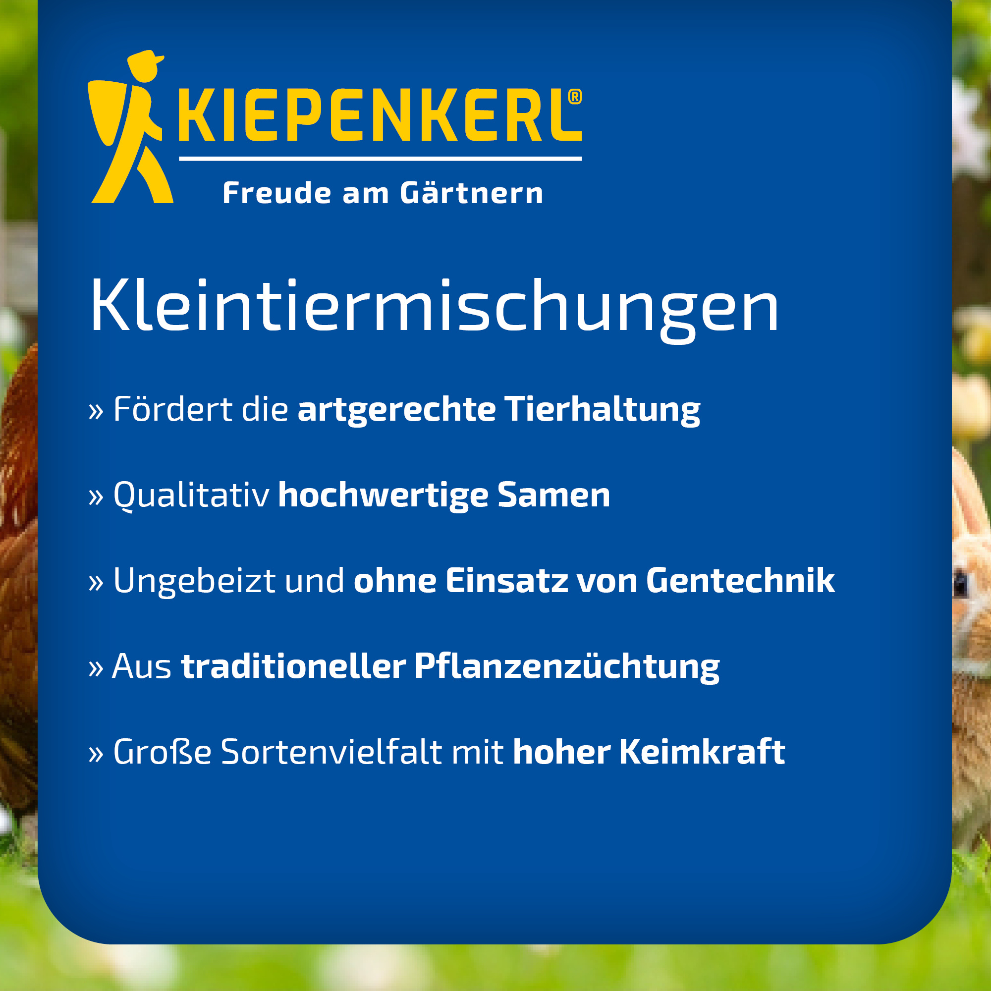Die Kiepenkerl Kleintier - Wiese mit schmackhaftem Klee ist besonders für Flächen geeignet, auf denen Kleintiere wie Kaninchen, Gänse und Hühner gehalten werden sollen.